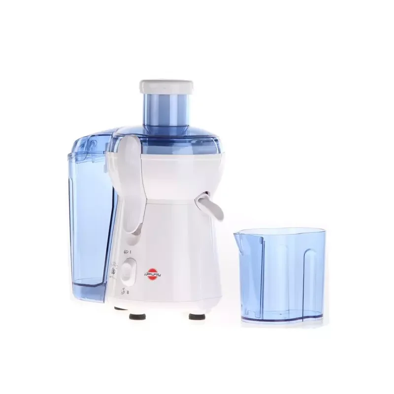 توان مصرفي 300 وات، دو تنظيم سرعت براي ميوه هاي نرم و سفت، داراي فيلتر و تيغه ضد زنگ تمام استیل، ظرف تفاله بزرگ براي داشتن آبميوه بيشتر در هر بار استفاده، پارچ آبميوه مدرج-پايه هاي لاستيكي براي ايستايي بيشتر، كليه قطعات جدا شونده براي شستشوي بهتر، برس مخصوص شستشو، دهانه بزرگ ورودي ميوه، سيم جمع كن قسمت زيرين دستگاه.