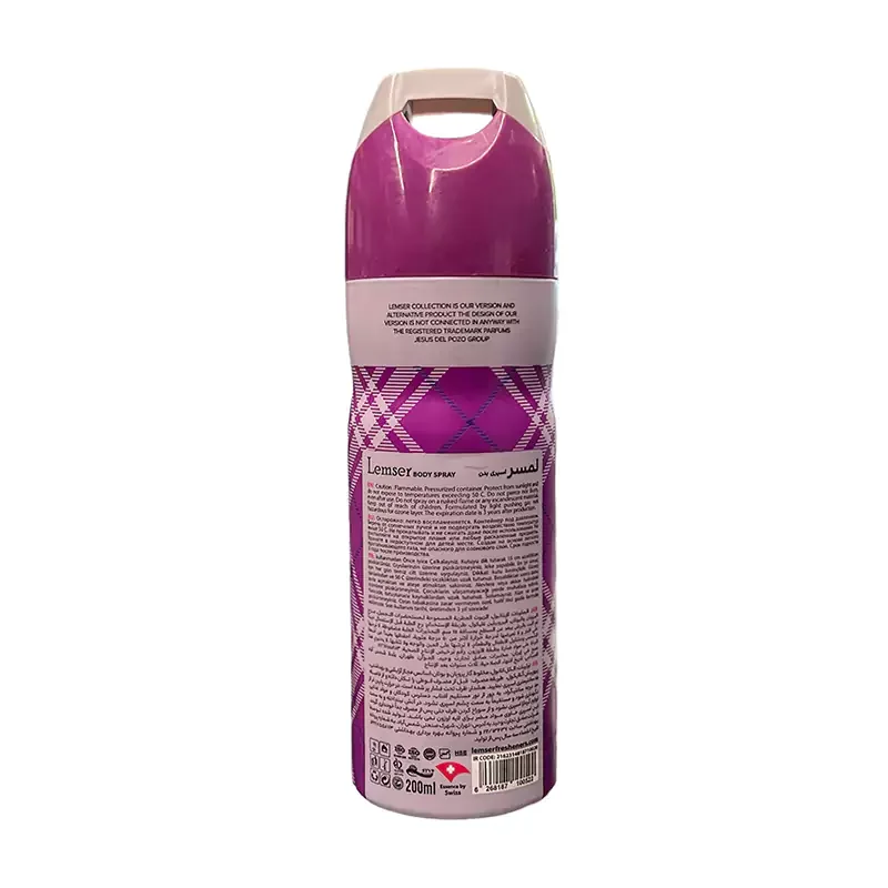 اسپری بدن لمسر حاوی انواع رایحه های جذابی است که هر کدام طرفداران خودش را دارد.از جمله محبوب ترین رایحههای این شرکت اسپری هالووین آن است که کاملا مشابه عطر اصلی و معروف هالوین است که اکثر خانم ها به این رایحه محبوب علاقهمند هستند.این اسپری حاوی رایحه ای گلی که متشکل از رایحه های گل بنفشه، فلفل و چوب صندل است.این اسپری بهصورت کامل بوی بد تعریق را از بین میبرد و میزان تعریق شما را کاهش میدهد و تا 24 ساعت بدن شما را خوشبو نگه میدارد و یک رایحه دلنشین را به مدت طولانی حفظ میکند.