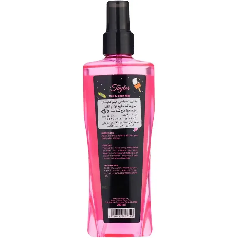 ابتدا پوست و موی خود را شستشو داده و کاملا خشک کنید. از فاصله ۱۵ سانتی متری و به میزان کافی بادی اسپلش تیلور را بر روی پوست و موی تمیز خود اسپری کنید. استفاده از این محصول روی گردن، پشت موها و روی نبض دست، باعث ماندگاری و پخش بهتر آن خواهد شد. به هیچ وجه نباید از این بادی اسپلش روی پیراهن استفاده شود. در صورت پاشیده شدن بادی اسپلش به درون چشم، محل تماس را با آب فراوان شستشو دهید. این محصول برای استفاده خارجی است و باید دور از دست کودکان و نور مستقیم آفتاب نگهداری شود.