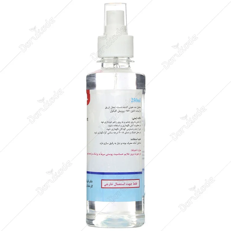 - حاوی ترکیب اتانول (C₂H₅OH) 70درصد برای ضدعفونی موثر