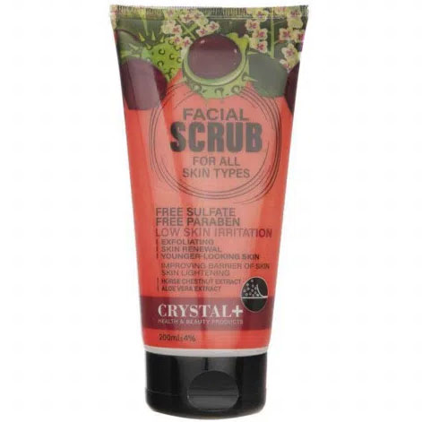 مقداری از اسکراب صورت کریستال را به صورت بمالید و پوست خود را به آرامی ماساژ دهید. از ماساژ دادن محکم جدا خودداری کنید و مراقب باشید که مواد اسکراب به اطراف چشم ها مالیده نشود. پس از گذشت چند دقیقه با آب ولرم کاملا صورت خود را بشویید.