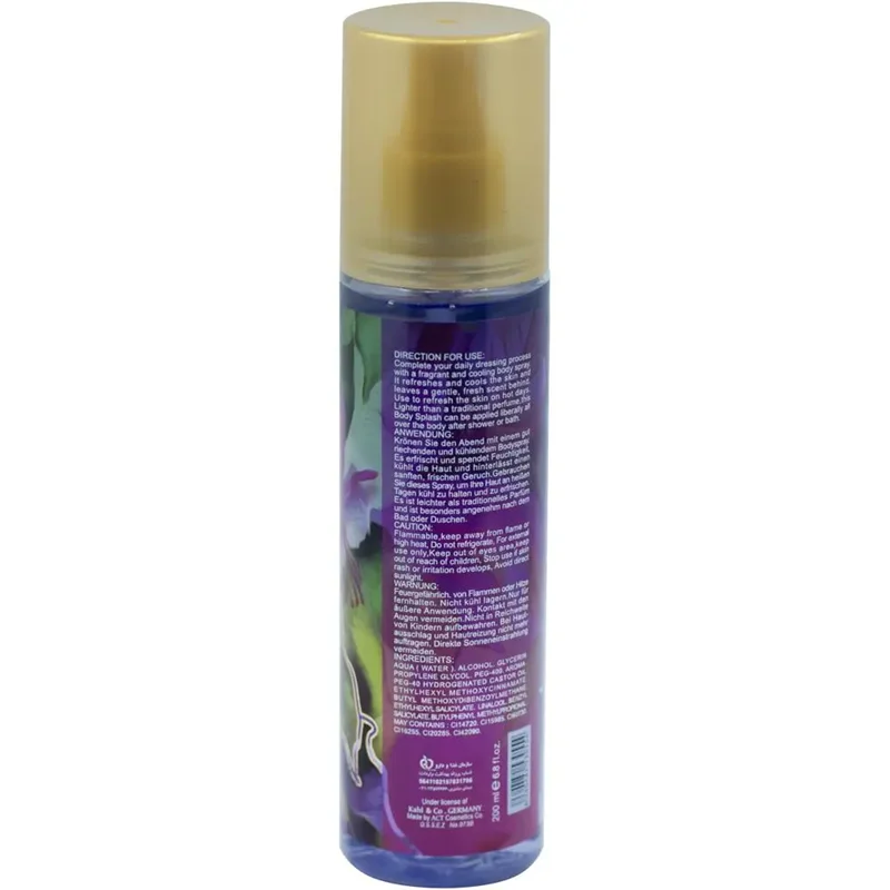 از فاصله 15 الی 20 سانتی متری از بدن، بادی اسپلش زنانه مای را اسپری کنید. اسپری بدن زنانه مای را می توان در طول روز، قبل از ورزش و یا پس از استحمام برروی بدن و نواحی مرطوب مورد نظر اسپری کنید. این محصول را در جای خشک و خنک و دور از نور مستقیم خورشید نگهداری کرده و از تماس مستقیم آن با چشم و زخم باز خودداری کنید.