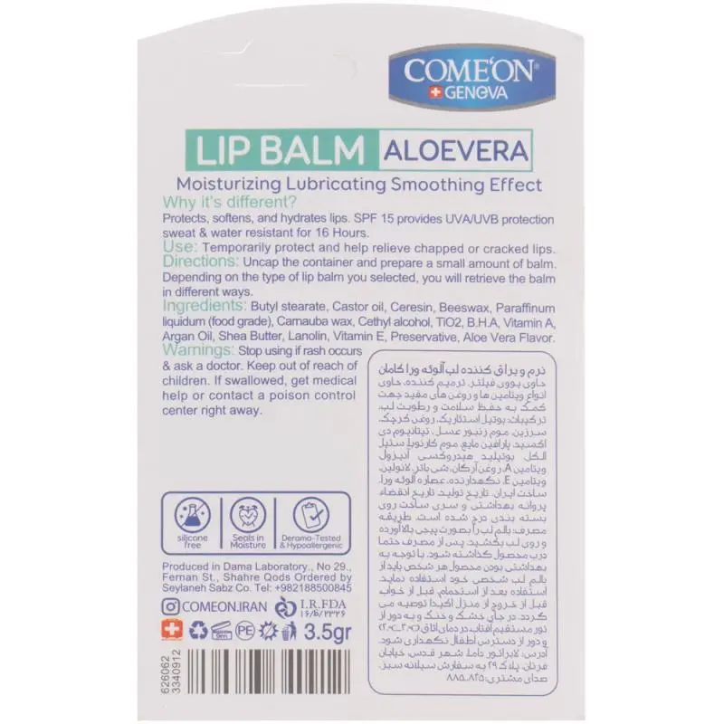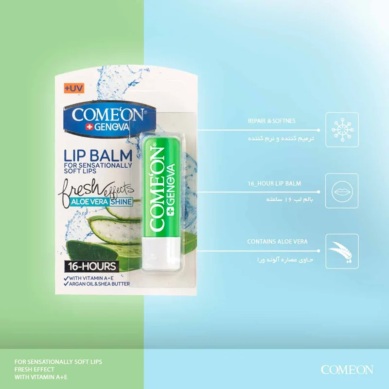معرفی بالم لب کامان حاوی عصاره آلوئه ورا وزن 3.5 گرم