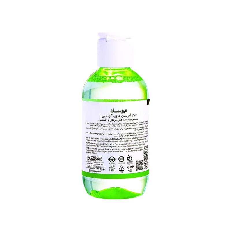 تونر آلوئه ورا نیوساد با خاصیت التیام بخشی، مناسب ترین تونر برای پوست های حساس تا نرمال هست. در این تونر میزان مناسبی از آلوئه ورا استفاده شده تا به طور موثر پوست های حساس رو که به راحتی ملتهب میشن التیام ببخشه. تونر آلوئه ورا نیوساد الکل نداره، PH پوست رو متعادل میکنه و سلامتی رو برای پوست صورت به ارمغان میاره.