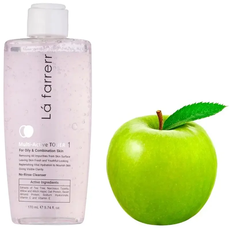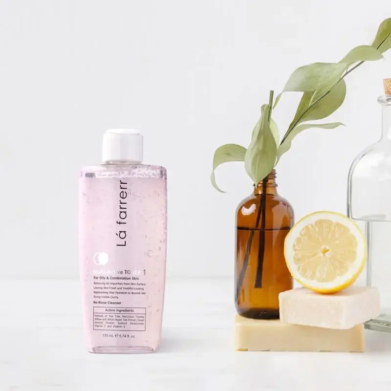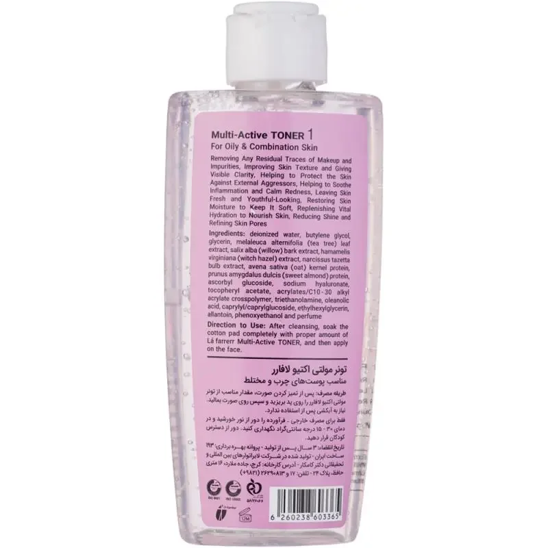پس از تمیز کردن صورت، مقدار مناسب از تونر مولتی اکتیو لافارر را روی پد آرایشی ریخته و سپس روی پوست بکشید.