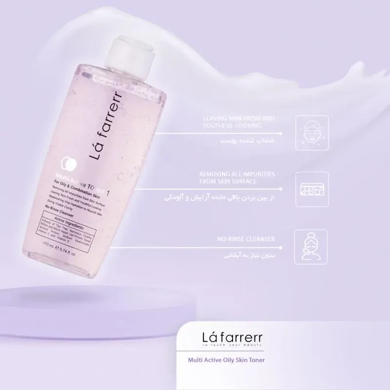 امروزه محصولات متنوعی برای پاکسازی روزانه و یا شستشوی عمیق پوست وجود دارد. تونر یکی از مناسبترین گزینهها جهت پاکسازی روزانه صورت از آلودگیها و چربی اضافی است که باید پس از شستشوی کامل پوست توسط شوینده و پاککننده آرایش، در روتین پوستی قرار بگیرد. تونرها محلولی رقیق هستند که بر پایه آب فرموله شدهاند و به عنوان یک پاککننده قوی پوست، گرد و غبار و آلودگی، لوازم آرایشی و چربی اضافی پوست را از بین میبرند و همچنین رطوبت پوست را تأمین میکنند. تونر لافارر پوست چرب، احیاکننده و درخشانکننده پوست است و در از بین بردن هرگونه اثر باقی مانده از آلودگی و آرایش مؤثر است. این محصول لطافت پوست را افزایش داده و سبب تسکین التهابات پوستی میشود.