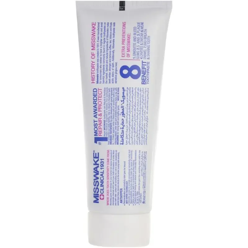 خمیر دندان میسویک برای دندان و لثههای حساس مناسب بوده و در کاهش درد و التهاب و جلوگیری از خونریزی لثه موثر است. این محصول با تکنولوژی ویژه آنتی هایپر ساخته شده و قابلیت پر کردن تمام حفره های ایجاد شده در دندان که با چشم قابل رویت نیستند را دارد.