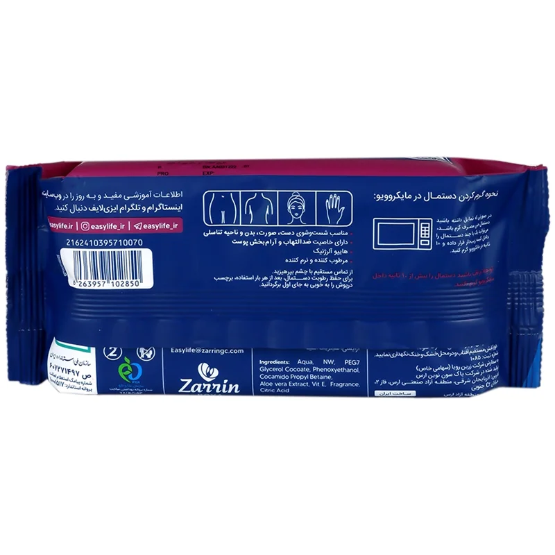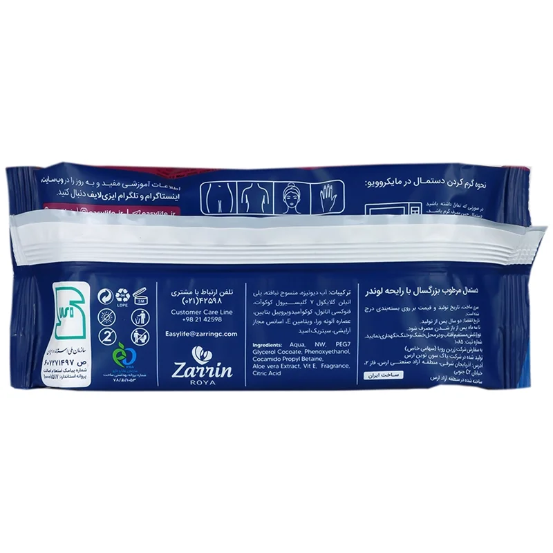 دستمال مرطوب بزرگسال لوندر ایزی لایف با ابعاد مناسب جهت پاکسازی پوست دست، صورت، بدن و ناحیه تناسلی استفاده میشود. این محصول، علاوه بر پاکسازی به تسکین علائم التهاب نظیر سوزش و قرمزی پوست کمک کرده و میتوان به شکل گرم هم از آن استفاده نمود.