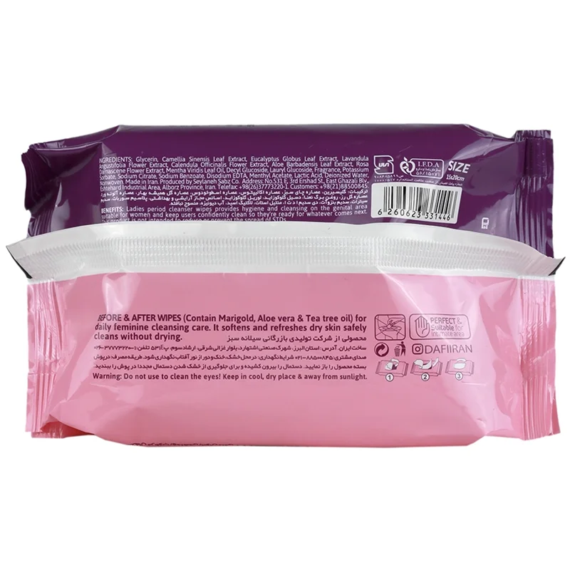 بسیاری از بانوان ترجیح می دهند در سفر و یا محیط بیرون از منزل، از دستمال مرطوب برای پاکسازی ناحیه تناسلی استفاده کنند. دستمال مرطوب بانوان دافی یکی از پاک کننده هایی است که غنی از عصاره های گیاهی بوده و در بسته بندی بیست عددی تولید و عرضه می شود. دستمال بهداشتی بانوان دافی حاوی ترکیبات آنتی باکتریال و ضد قارچ است که در جلوگیری از آلودگی ناحیه تناسلی موثر هستند.