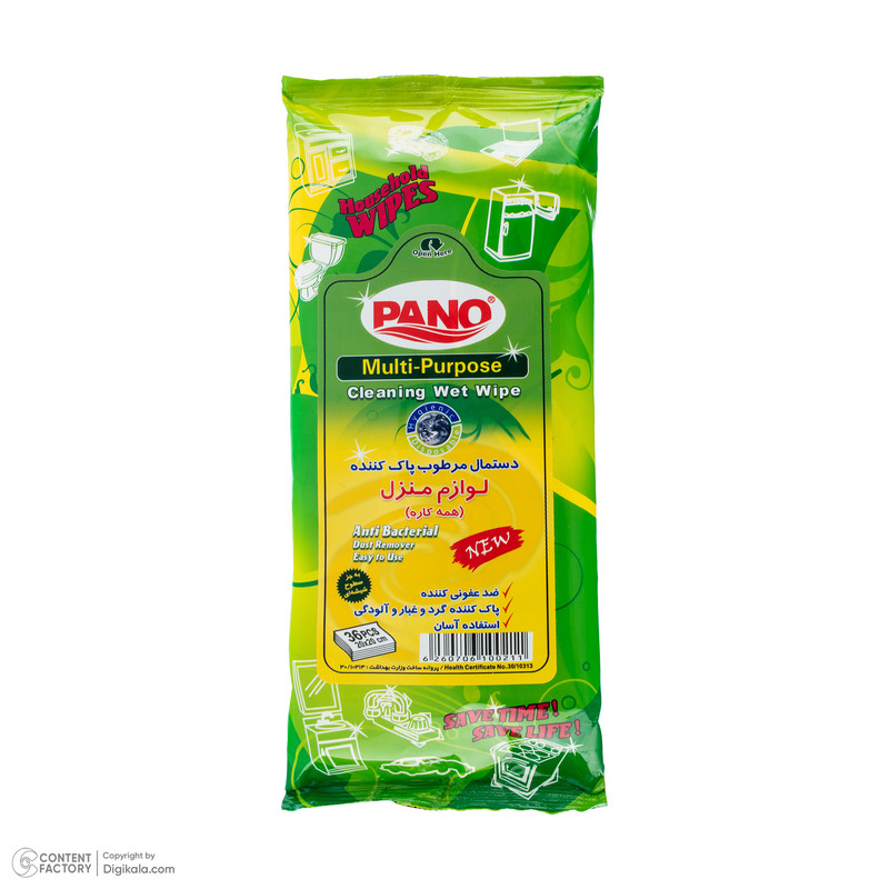 دستمال مرطوب پاک کننده و ضد عفونی کننده پانو، راهکار فوری و موثر برای درخشش بینظیر منزل شما! با قابلیت ضدعفونی قوی و فرمولاسیون ایمن، این دستمال برای تمامی سطوح مناسب است و هرگونه لکه و میکروب را به سرعت از بین میبرد. انتخابی ایدهآل برای داشتن محیطی سالم و بینقص!