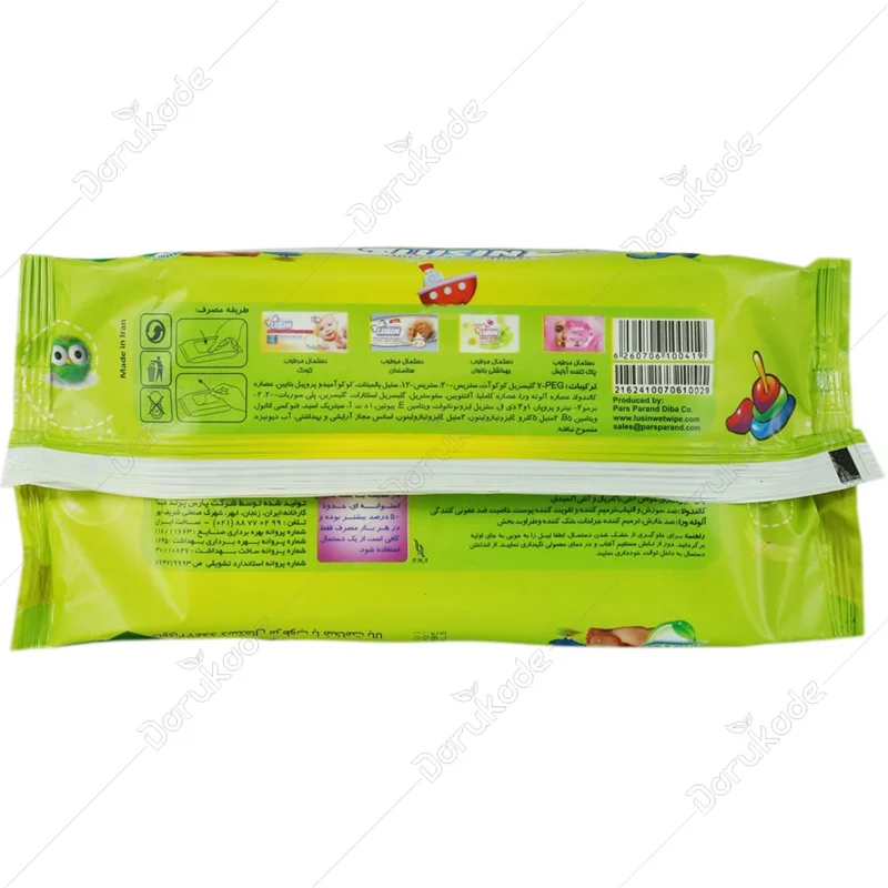 دستمال مرطوب لوسین: حاوی کرم نرم کننده پوست با فرمولاسیون منحصر به فرد و پیشرفته برای پاک کردن و ضد عفونی نمودن پوست بدن و دست های نوزادان و کودکان، به صورت روزانه و به دفعات توصیه می گردد.