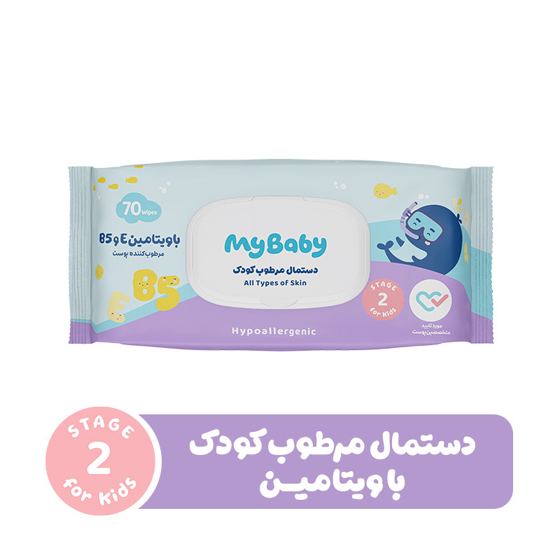 دستمال مرطوب کودک مای بیبی مدل ویتامین E و B5، انتخابی عالی برای لطافت و محافظت از پوست حساس کودکتان! با بستهبندی 70 عددی، استفاده آسان و حملونقل راحت در هر زمان و مکان را تجربه کنید. مراقبتی ملایم و موثر که نرمی و تازگی را به پوست کودک دلبندتان هدیه میدهد. بهترین همراه مراقبتی برای خانوادههای آگاه!