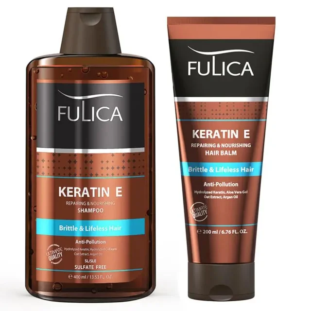 شامپو تقویت کننده مو و ترمیم کننده به همراه بالم مو فولیکا مدل Keratine E مجموعه دو عددی