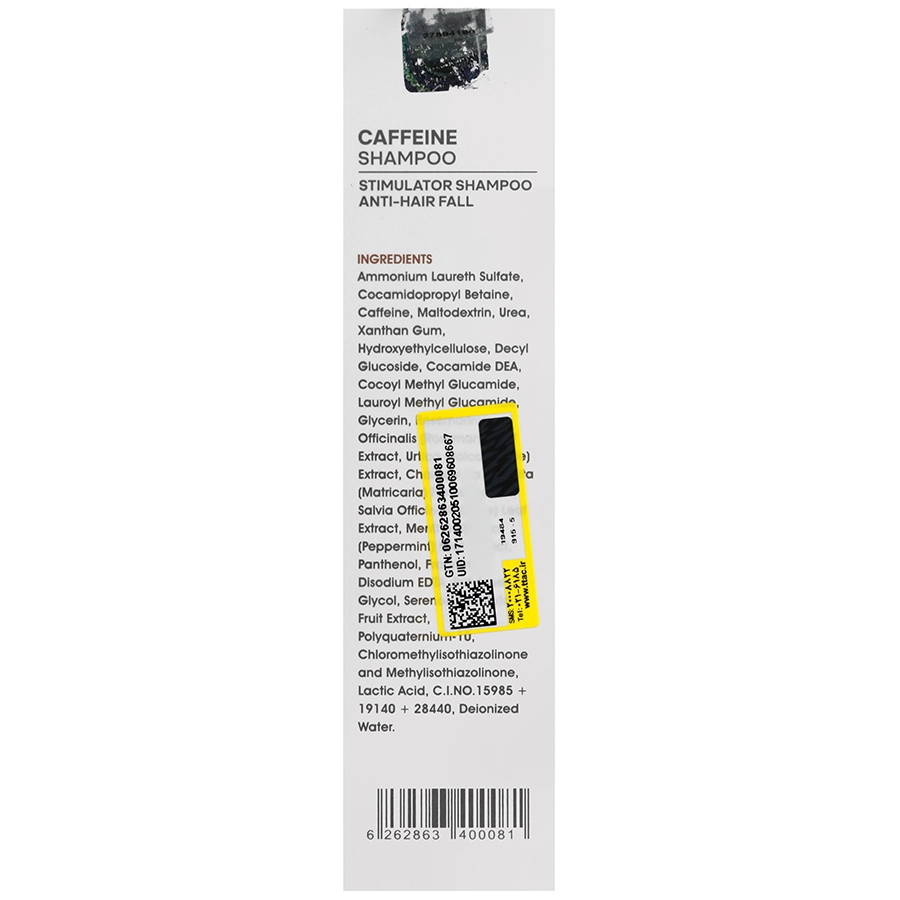 آمونیوم لورت سولفات، کوکامیدوپروپیل بتائین، آب، بوتیلن گلایکول، کافئین، مالتودکسترین، سرنوا سرولاتا فروت اکسترکت، گلیسیرین، اوره، زانتان گام، هیدروکسی اتیل سلولز، فنوکسی اتانل، دسیل گلوکوزاید، کوکامیدودی اتانول آمید، عصاره رزماری، عصاره گزنه، عصاره بابونه، عصاره مریم گلی، عصاره نعناع فلفلی، تریتیکوم ولگار(ویت) گلوتن، آب، پانتنول، اسانس مجاز آرایشی و بهداشتی، پیریدوکسین هیدروکلراید، دی سدیم ا.د.ت.ا، پلی کواترنیوم ??، ? کلرو? متیل ? ایزوتیازولین ?- وان و ? متیل ? ایزوتیازولین ?-وان، اسید لاکتیک، رنگ، آب دیونیزه