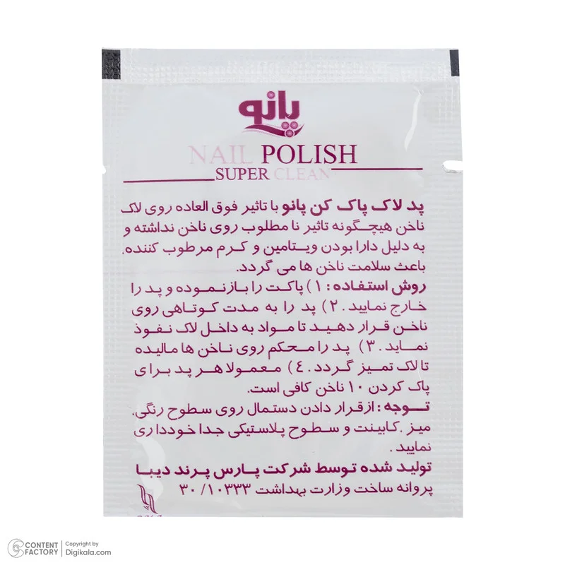 آیا از لاکهای قدیمی خسته شدهاید؟ با لاک پاک کن پانو مدل 001، در بستهبندی 5 عددی، به سرعت و بدون آسیب به ناخنهای خود، لاکهای قدیمی را پاک کنید. فرمولاسیون قوی و ملایم این محصول، تجربهای آسان و کارآمد برای شما فراهم میکند. هماکنون خرید کنید و به ناخنهای خود تازگی ببخشید!