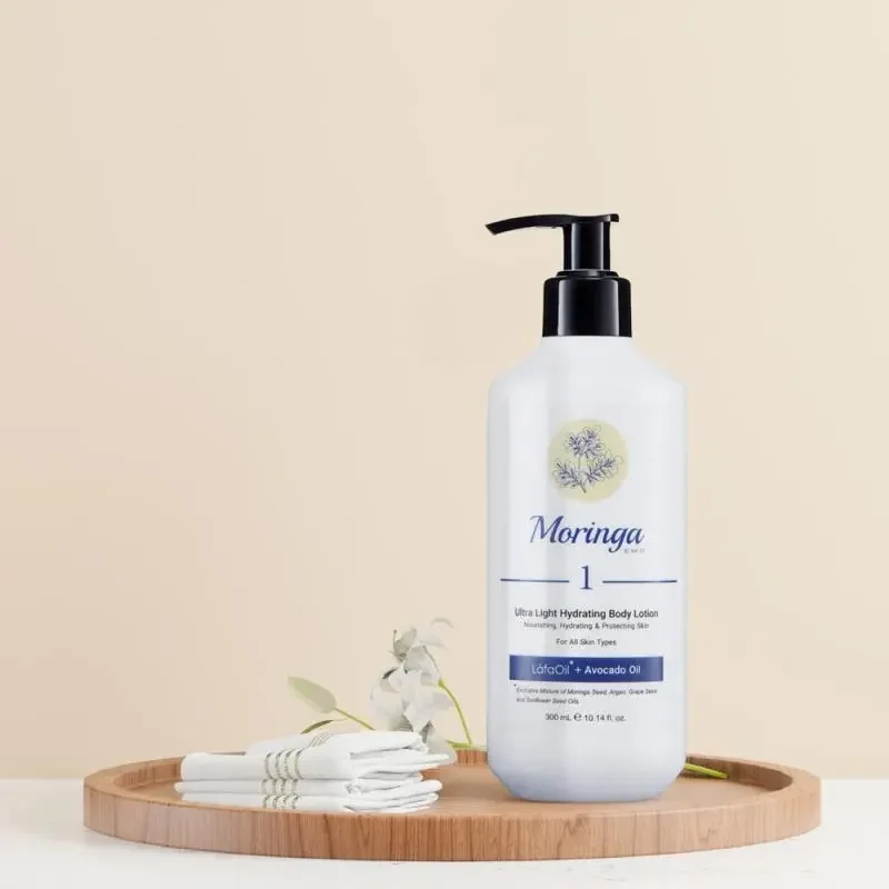 لوسیون آبرسان بدن مورینگا امو ظرفیت 300 میلی لیتر حاوی ترکیبی از مواد مرطوبکننده و نرمکننده هستند. محصولات بهداشتی و مراقبتی برند مورینگا امو، از روغنهای گیاهی و ویتامینهایی ساخته شده که به آن لافاایل گفته میشود. روغن دانه گیاه مورینگا مهمترین ماده سازنده این ترکیب بوده که به بهبود سلامت و احیای جوانی پوست کمک شایانی میکند. همچنین مرطوبکنندههایی مانند گلیسیرین، هیالورونیک اسید و آلوئهورا، رطوبت را از محیط جذب کرده و وارد پوست میکند و به افزایش سطح هیدراتاسیون کمک میکنند.