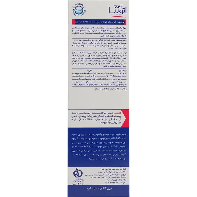 فاقد مواد صابونی و قلیایی، اسانس، الکل، رنگ و SLS/SLES