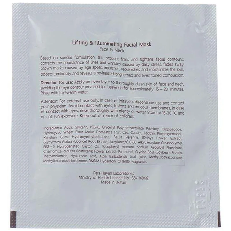 لایه ایی از ماسک را روی پوست تمیز صورت و گردن، به غیر از اطراف چشم و دهان بمالید. پس از 15 الی 20 دقیقه با آب ولرم بشویید.