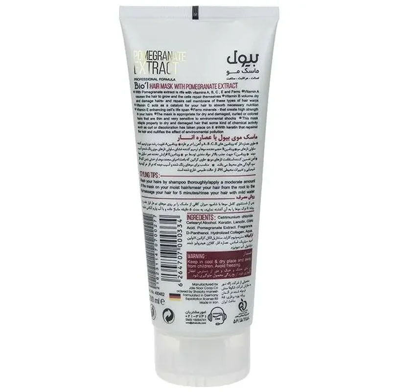 بعد از استحمام، موها رو خشک کرده به‌طوری‌که کمی نم و رطوبت داشته باشد، سپس، مقدار مناسبی از ماسک مو با عصاره انار مناسب موهای رنگ‌شده و آسیب‌دیده بیول را کف دست ریخته و از ریشه تا ساقه مو را به مدت 5 دقیقه به‌خوبی ماساژ دهید و سپس با آب بشویید. این ماسک را می‌توانید 2 الی 3 مرتبه در هفته استفاده کنید. بعد از دو هفته استفاده، آثار شگفت‌انگیز ماسک مو را روی موهای خود احساس خواهید کرد.