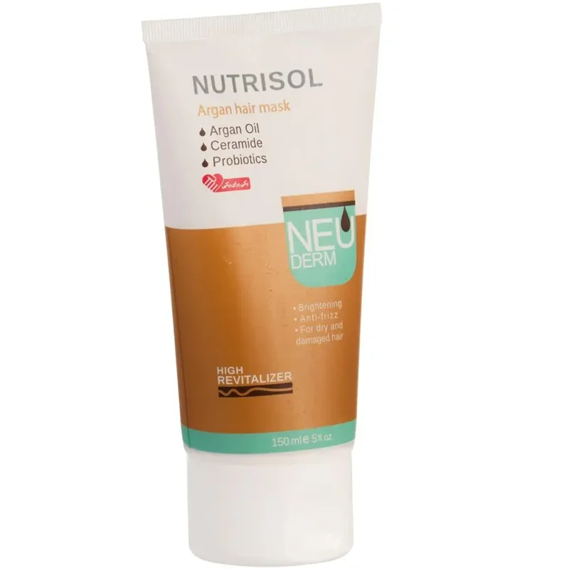 ماسک مو نئودرم با روغن آرگان به عنوان ترکیب اصلی خود، به تقویت و ترمیم موها کمک کرده و باعث افزایش رطوبت و نرمکنندگی موهای میشود. در ترکیبات آن از ویتامینهای A ،E و C استفاده شده است که از وز شدگی و موخوره جلوگیری میکند.
