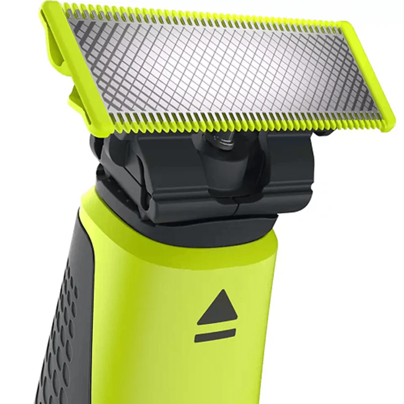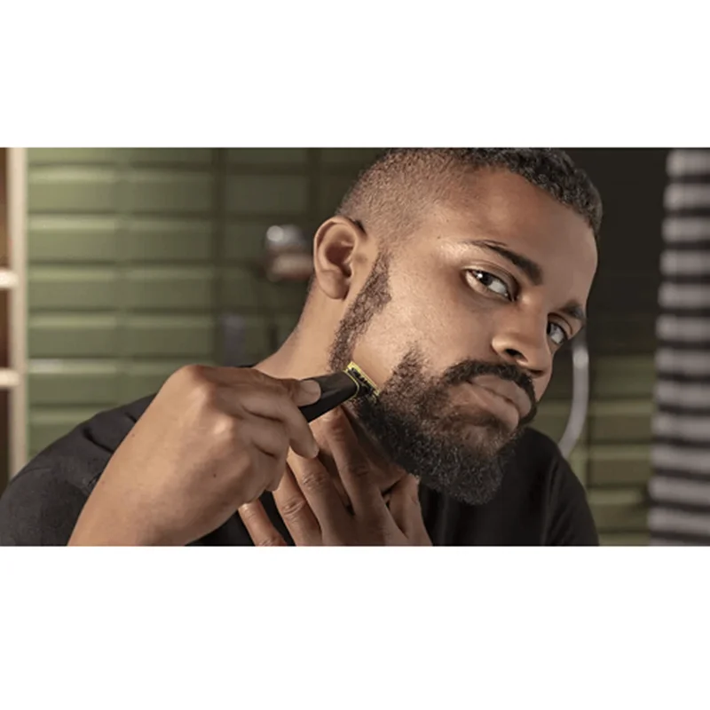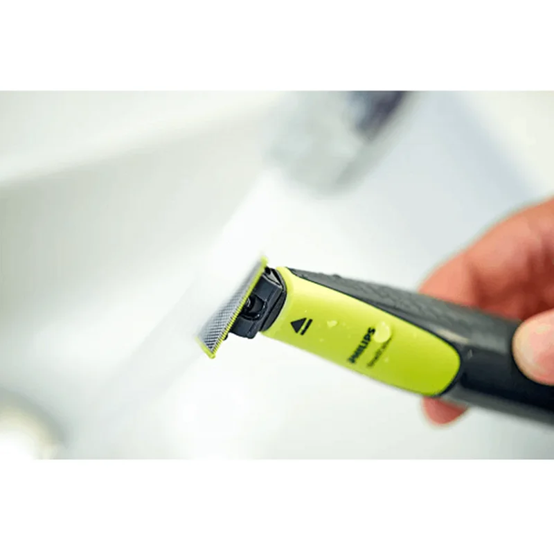 ماشین اصلاح وان بلید (OneBlade) فیلیپس با فن آوری انقلابی خود قادر به اصلاح صورت و بدن می باشد. این دستگاه قادر به کوتاه کردن، خط گیری و تراشیدن هر مویی با هر اندازه ای می باشد. فن آوری دوگانه مراقب از پوست دستگاه شامل یک لایه پوشش روی تیغه ها به همراه لبه های گرد آن ها می باشد که مانع از هر گونه آسیب رسیدن به پوست می شوند. تیغه دستگاه با سرعت 200 جابه جایی در هر ثانیه به طرز موثری تمامی موها را اصلاح می کند.