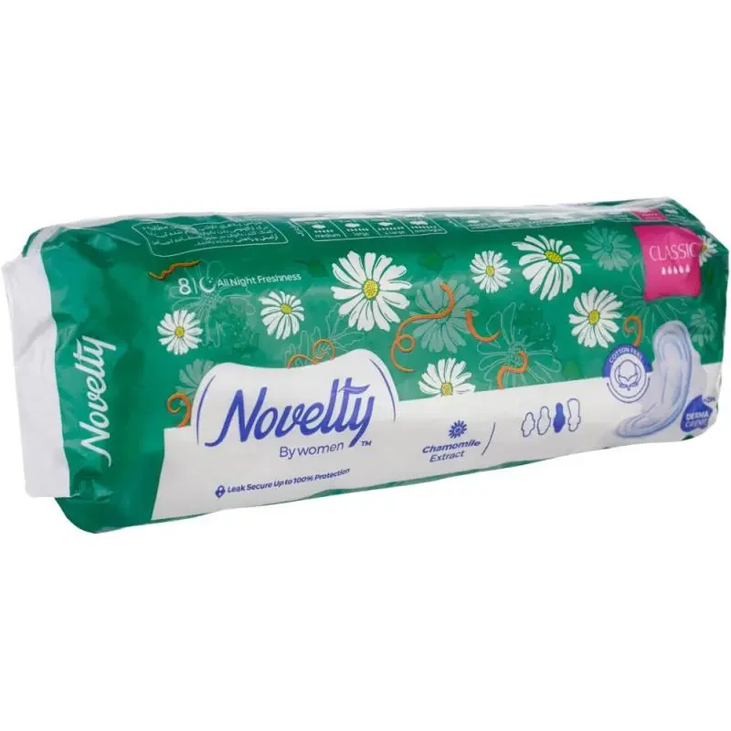 نوار بهداشتی بالدار ناولتی حاوی عصاره بابونه مدل Classic سایز خیلی بزرگ بسته 8 عددی