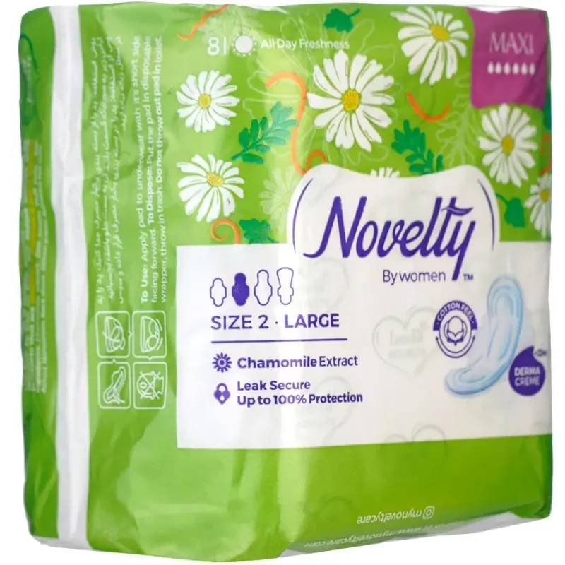 نوار بهداشتی بالدار ناولتی حاوی عصاره بابونه مدل Maxi سایز بزرگ بسته 8 عددی