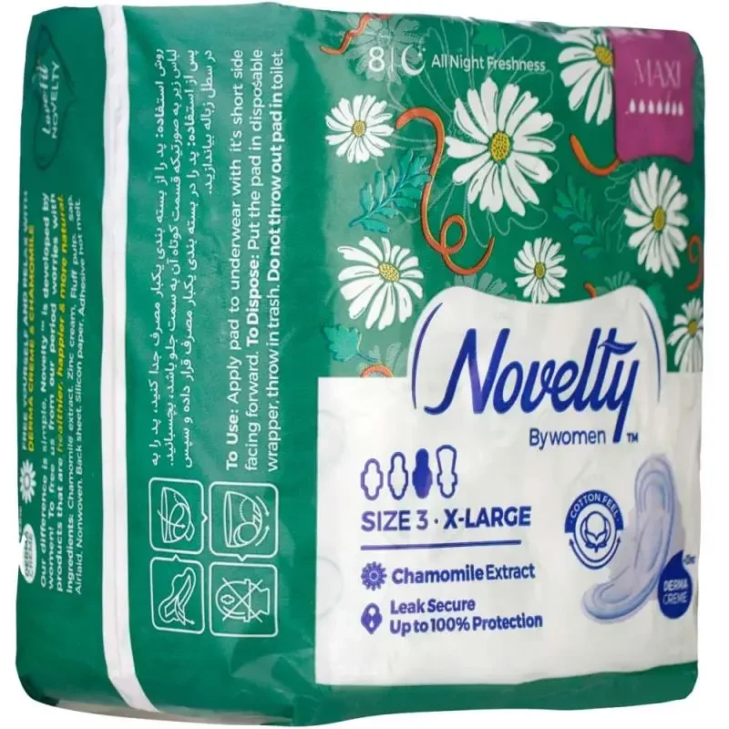 با نوار بهداشتی بالدار ناولتی حاوی عصاره بابونه مدل Maxi، راحتی و آرامش واقعی را تجربه کنید. این محصول با طراحی بالدار و سایز خیلی بزرگ، حداکثر حفاظت و جذب بالا را ارائه میدهد. عصاره بابونه موجود در آن به کاهش تحریکات پوستی کمک کرده و حس تازگی و طراوت را به شما هدیه میدهد. بسته 8 عددی برای اطمینان در روزهای خاص.