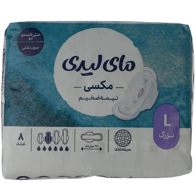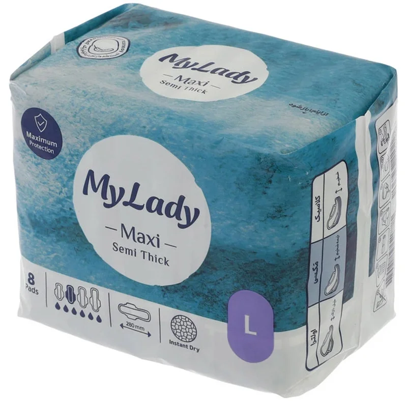 معرفی نوار بهداشتی بالدار نیمه ضخیم مای لیدی سایز بزرگ بسته 8 عددی