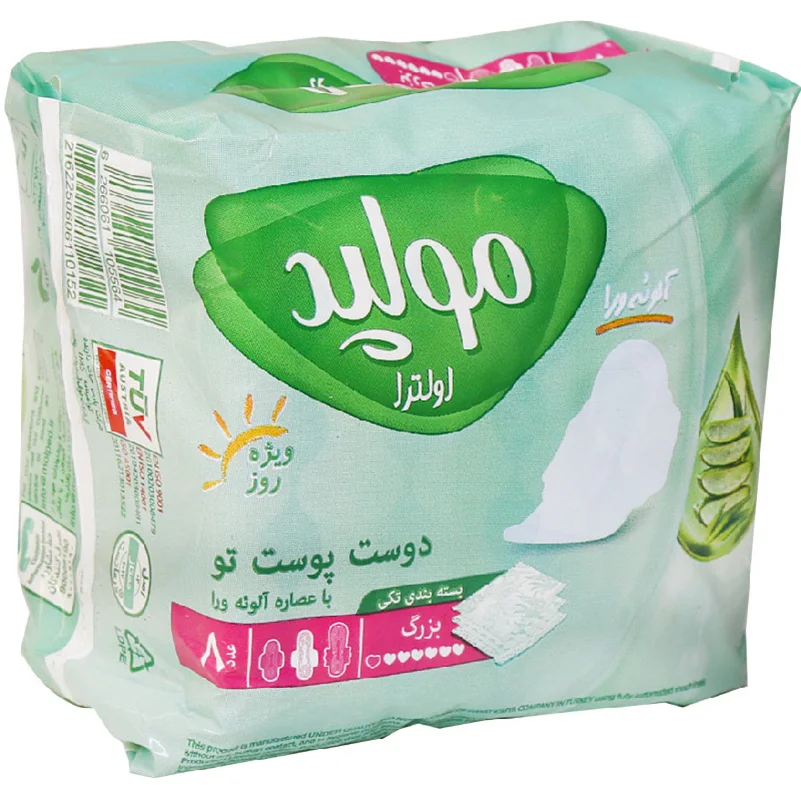 لایه محافظ سطح چسبنده را از روی نوار بهداشتی جدا کنید. نوار بهداشتی را از طرف چسبنده آن، به نحوی که بالهها در کنارهها قرار گیرند، روی لباس زیر خود بگذارید. بالههای نواربهداشتی را به طرف زیر لباس زیر خود تا کرده، به دو طرف بچسبانید.