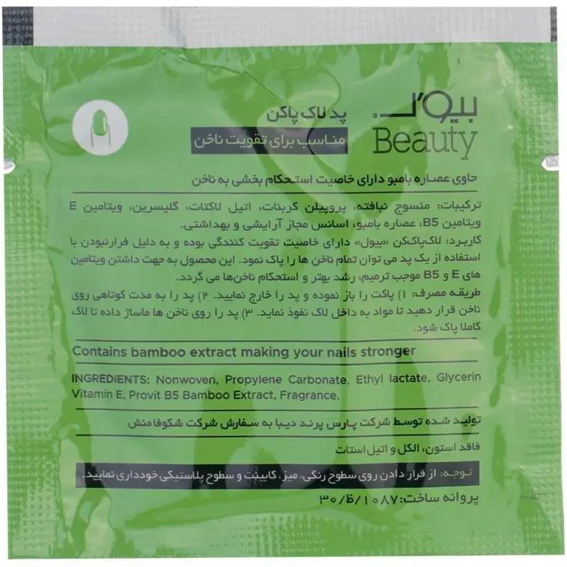 درب ساشه را باز نموده و پد را از داخل ان خارج کنید.سپس به ارامی بر روی لاک ناخن ها کشیده، گوشه و زوایای کنار پوست را نیز کاملا تمیز کنید.