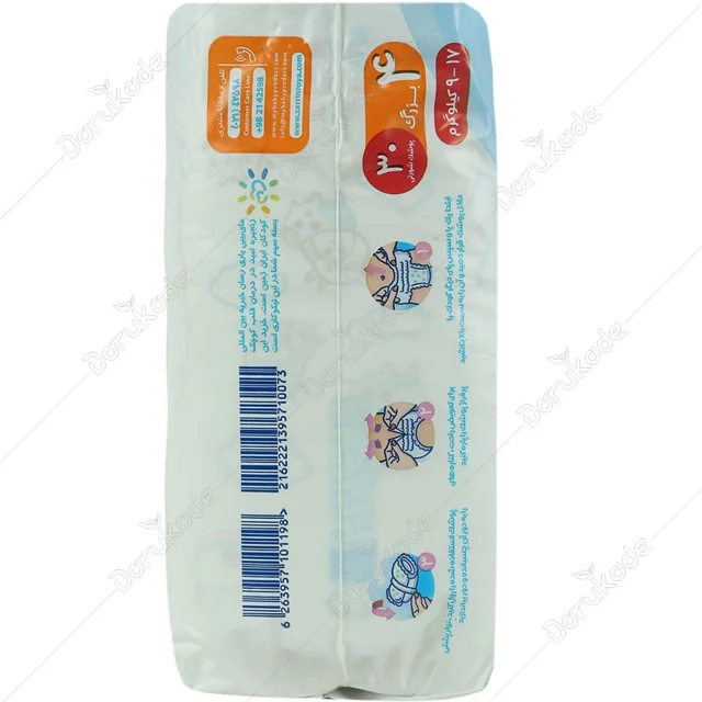 ابتدا یک پا و سپس پای دیگر کودک را داخل پوشک شورتی قرار دهید و آن را به سمت بالا بکشید. برای تعویض راحت، کناره های پرفراژ پوشک را پاره کنید. پوشک استفاده شده را رول کنید. نوار پشتی را به دور آن چسبانده و دور بیاندازید.
