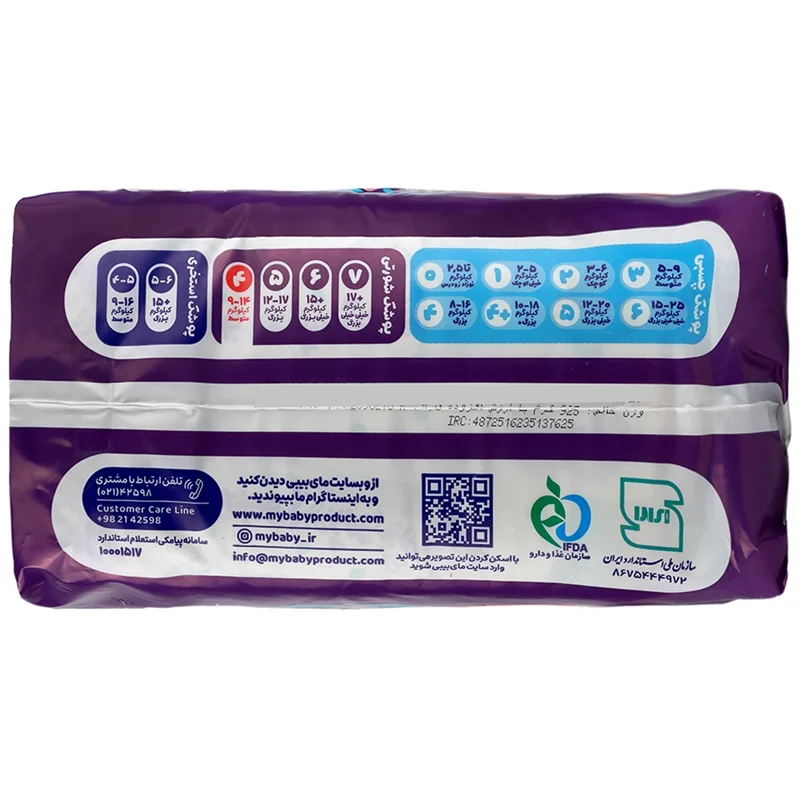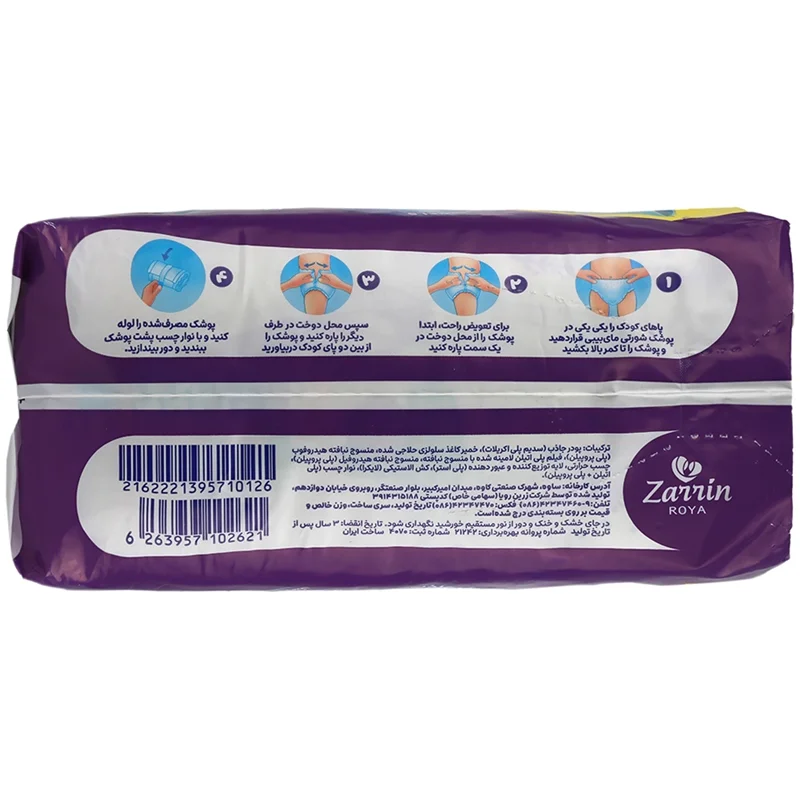 پاهای کودک را یکی یکی در پوشک شورتی مایبیبی قرار دهید و پوشک را تا کمر بالا بکشید. برای تعویض راحت، ابتدا پوشک را از محل دوخت در یک سمت پاره کنید.سپس محل دوخت در طرف دیگر را پاره کنید و پوشک را از بین دو پای کودک دربیاورید.پوشک مصرفشده را لوله کنید و بانوارچسب پشت پوشک را ببندید و دور بیندازید.