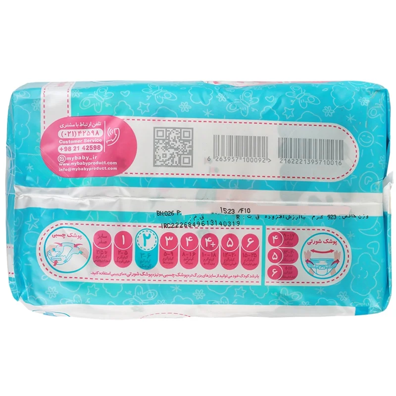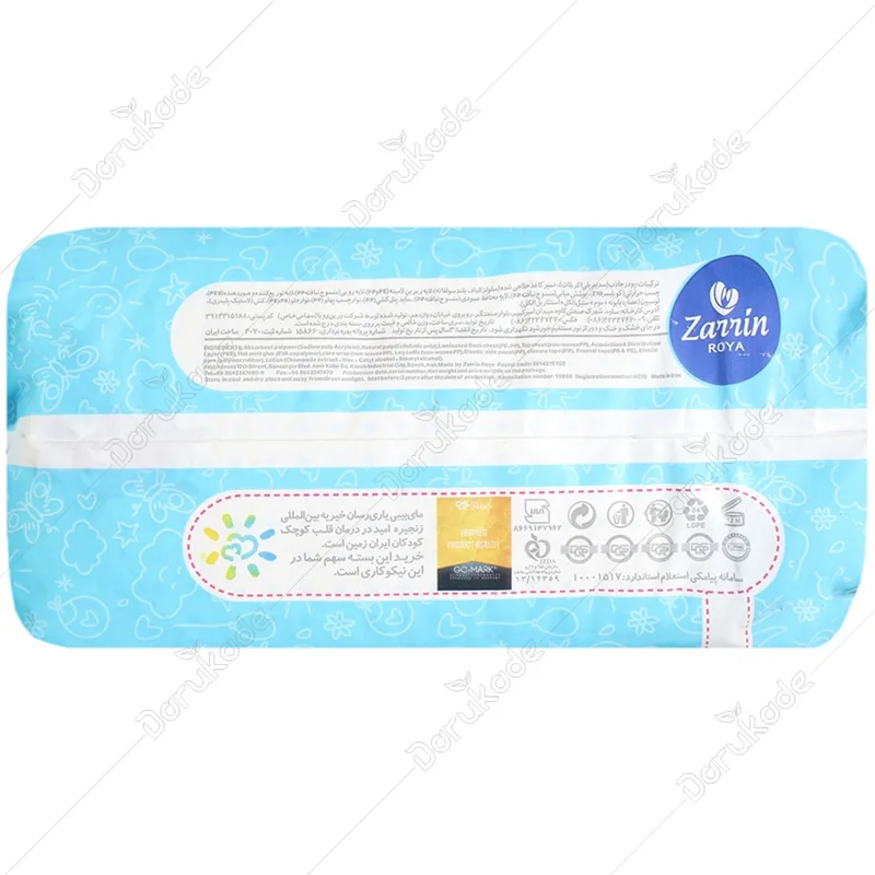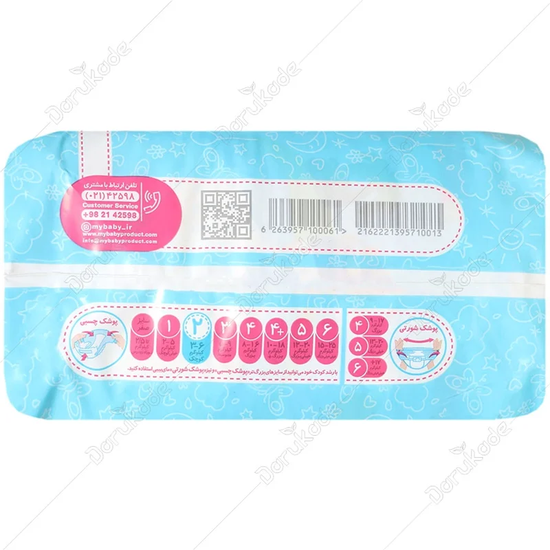 1- پوشک را باز کرده و به گونه ای در زیر نوزاد قرار دهید تا چسب های کناری سبز رنگ در پشت نوزاد قرار گیرد. 2- لایه های کشسان داخلی کنار پوشک را در بین پا و به سمت بیرون قرار دهید. 3- چسب های کناری سبز رنگ را مطابق اندام کودک بر روی نوار جلو قرار دهید.