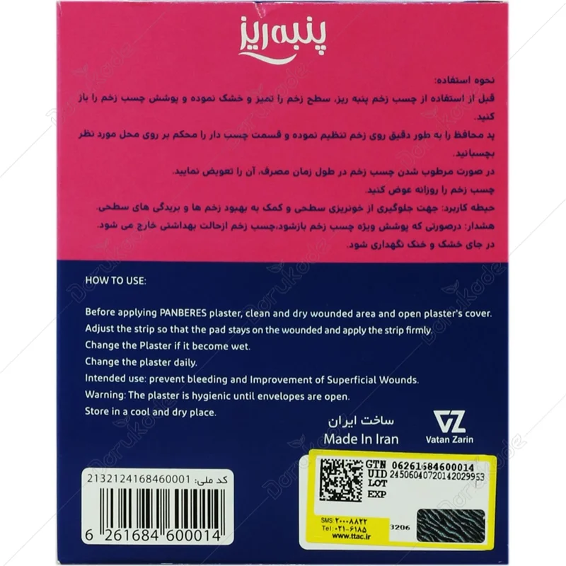 قبل از استفاده از چسب زخم پنبه ریز، سطح زخم را تمیز و خشک نموده و پوشش چسب زخم را باز کنید. پد محافظ را به طور دقیق روی زخم تنظیم نموده و قسمت چسب دار را محکم بر روی محل مورد نظر بچسبانید.