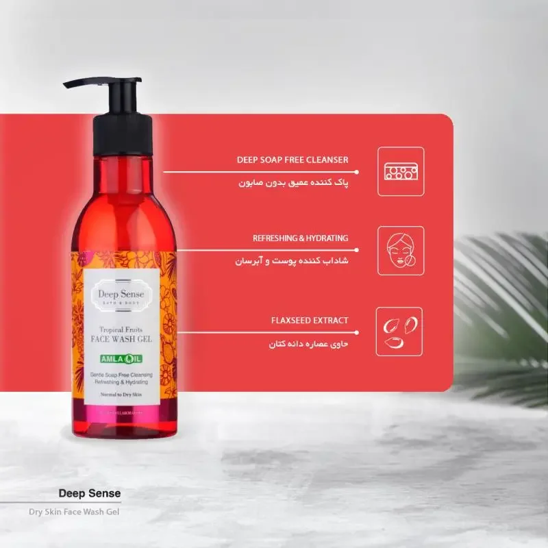 افراد دارای پوست خشک اغلب به دنبال محصولاتی هستند که رطوبت مورد نیاز پوستشان را تأمین کند و از خشکی و احساس کشیدگی در پوست پیشگیری کند. اگر شما هم دارای پوست خشک هستید، ژل شستشو دیپ سنس پوست خشک، یک گزینه مناسب برای شما خواهد بود. این محصول با حفظ رطوبت پوست مانع از ایجاد چین و چروک شده و با ترکیبات ملایم خود ضمن پاکسازی پوست، هیچ آسیبی به آن وارد نمیکند. این محصول حاوی عصاره میوههای استوایی بوده که با داشتن انواع ویتامینهای مورد نیاز پوست، آن را تغذیه و تقویت کرده و با آبرسانی به پوستهای خشک طراوت و تازگی میبخشد.
