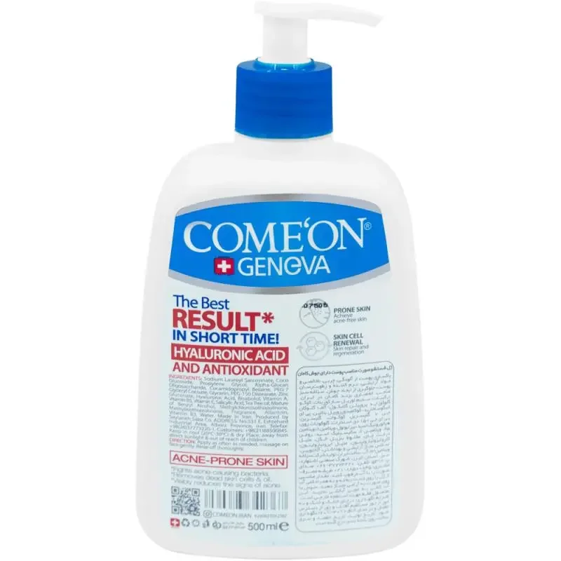 صورت بدون جوش با ژل شستشو صورت مناسب پوست آکنه ای کامان ظرفیت 500 میلی لیتر