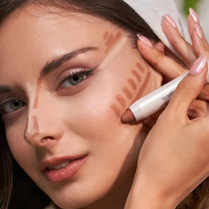 مناطقی از صورت که ترجیح میدهید به صورت فرو رفته نمایش داده شود را با استفاده از کانتور تیره نمایید.