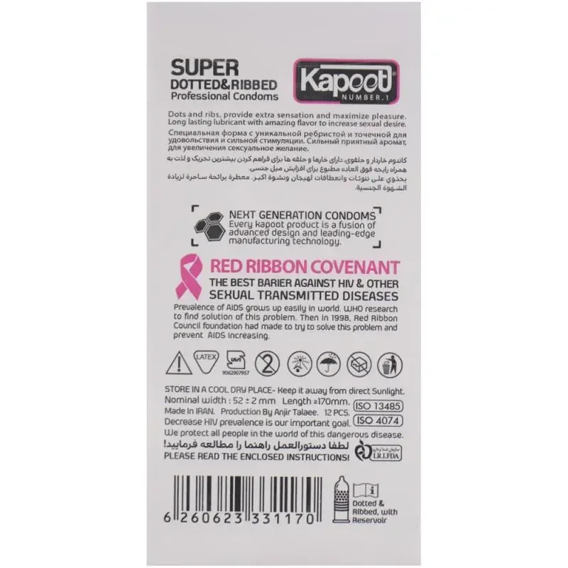 با کاندوم کاپوت مدل Super Dotted And Ribbed، تجربهای متفاوت از لذت و ایمنی را تجربه کنید! این محصول با برجستگیها و شیارهای ویژه، احساس بیشتری را منتقل کرده و لذت شما و شریک زندگیتان را دوچندان میکند. بسته 12 عددی برای تجربههای بینظیر و فراموشنشدنی. هماکنون خرید کنید و لذت را تجربه کنید!
