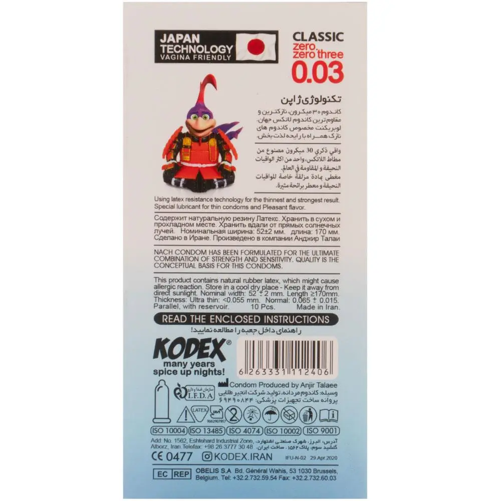 - کاندوم کدکس کلاسیک عرضه شده در بسته بندی3 و 10 تایی