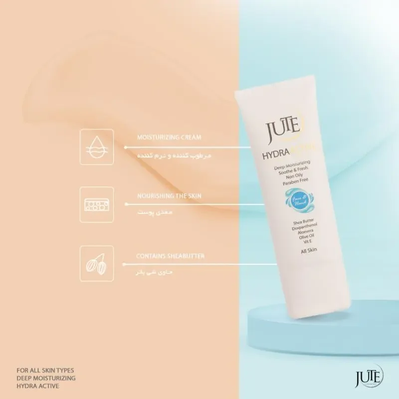 کرم آبرسان ژوت مناسب انواع پوست از عصارههای طبیعی و گیاهی آبرسان همچون آلوئه ورا، زیتون و شی باتر ساخته شده است که علاوه بر رطوبت رسانی عمیق به پوست به واسطه داشتن اسیدهای چرب مفید، منافذ پوست را از انواع آلودگی، چربی اضافی و کثیفیهای دیگر پاک کرده و همچنین به دلیل داشتن آنتی اکسیدان، موجب ترمیم و بهبود جای زخم، التهاب و آفتاب سوختگی میشود.