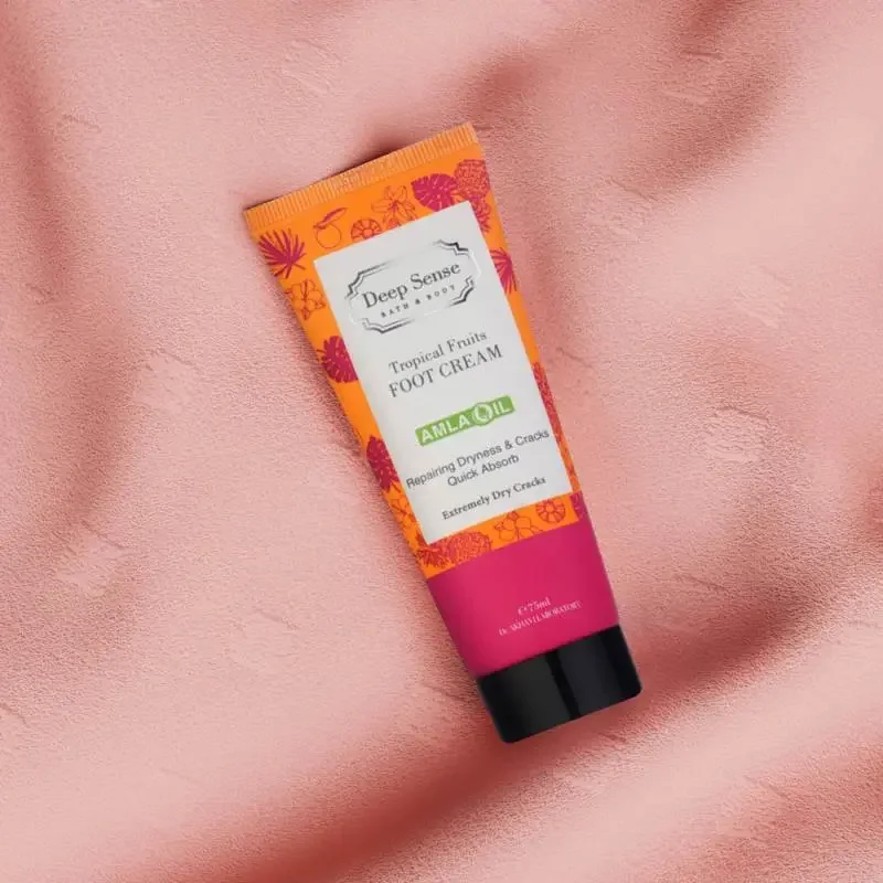 کف پا بخشی از بدن است که معمولا کمتر مورد توجه و مراقبت قرار می گیرد، که در نتیجه ممکن است دچار خشکی و ترک شود. ترک پاشنه پا یک مشکل پوستی شایع بوده است که معمولا در فصول سرد سال تشدید می شود. هر عاملی که باعث خشکی پوست شود، می تواند ترک پا را ایجاد کرده و یا آن را تشدید کند، اما عوامل دیگری نظیر وراثت، ایستادن های طولانی مدت، کفش نامناسب و شستشوی متعدد نیز در بوجود آمدن ترک پا موثر هستند. کرم ترک پا دیپ سنس مدل Tropical Fruits برای رفع خشکی، پینه و ترک پا و همچنین نواحی مانند آرنج و زانو مناسب است و با لایه برداری از سلول های مرده و آسیب دیده و رطوبت رسانی عمیق پوست پا موجب نرمی و لطافت آن می شود.