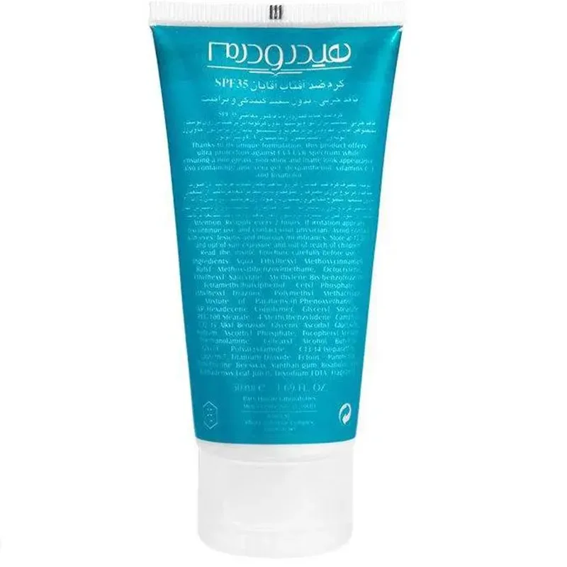 نيم ساعت قبل از خارج شدن از منزل و يا محل كار مقداری از كرم ضد آفتاب با فاكتور حفاظتی 35 هيدرودرم بر روی نقاطی از پوست كه در معرض تابش نور خورشيد قرار دارند ماليده و به خوبی ماساژ دهيد اين عمل را هر دو ساعت يك بار تجديد كنيد.