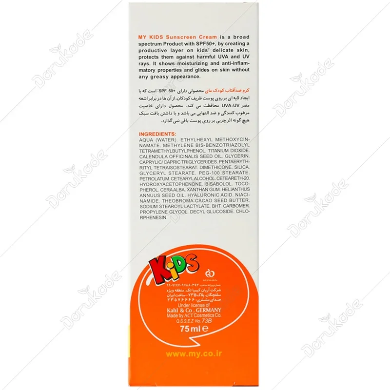 کرم ضد آفتاب کودکان مای با فاکتور حفاظتی +۵۰ از پوست حساس کودکان در برابر اشعه های مضر نور خورشید محافظت می کند. این کرم ضد آفتاب به دلیل داشتن روغن های گیاهی و با خواص ضد باکتری و ضد التهاب از پوست کودک شما محافظت میکند و به تامین رطوبت مورد نیاز آن میپردازد.