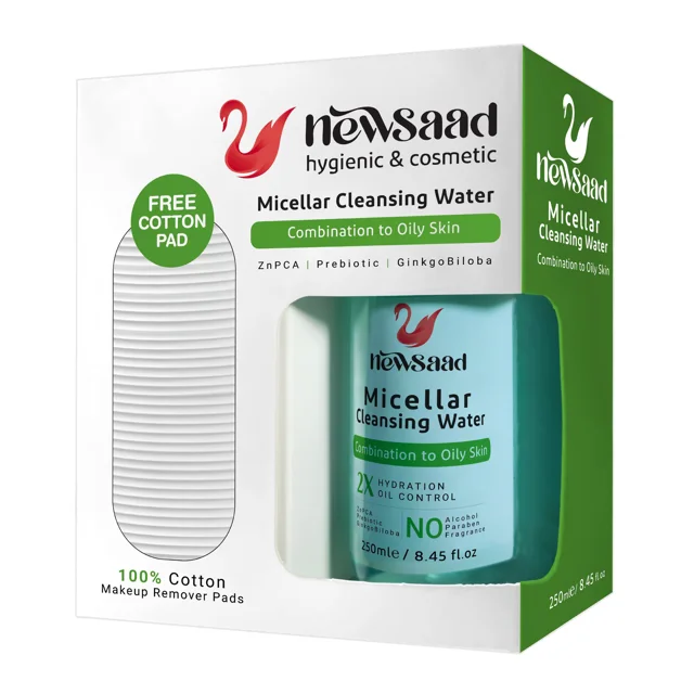 پد یا پنبهای را به مقدار مناسبی از محلول میسلار واتر پوست چرب نیوساد آغشته کنید، سپس با پد مرطوب آرایش را پاک کنید و اجازه دهید تا به آرامی خشک شود؛ این محصول مناسب پاکسازی ملایم و مؤثر پوستهای چرب است.